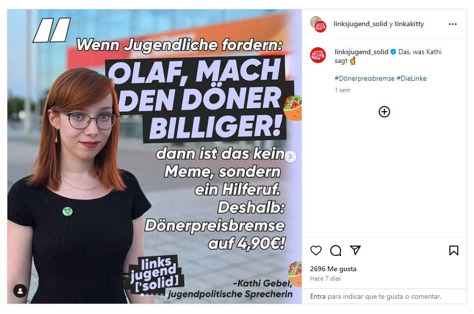 Tanto es así, que el partido de extrema izquierda Die Linke ha tenido la ocurrencia de proponer establecer un tope en el precio del kebab en 4,9 euros y que el resto lo subvencione el Estado a través de unos tickets que se le pagarían a los empresarios. Esta formación política es la última encarnación del partido comunista que gobernaba Alemania del Este. La propuesta viene del lado de la facción joven del Die Linke.