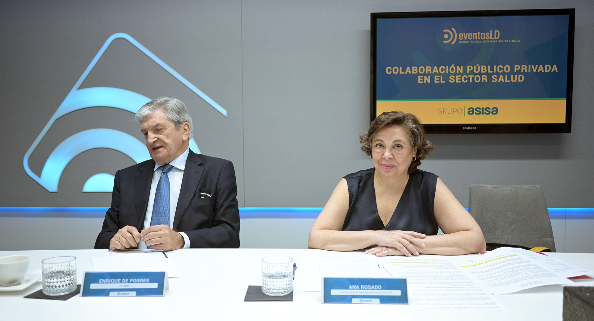 El doctor Enrique de Porres, CEO de ASISA, y la directora de cátedra de la UCM, Ana Rosado, durante el coloquio "Colaboración Público Privada en el sector salud"