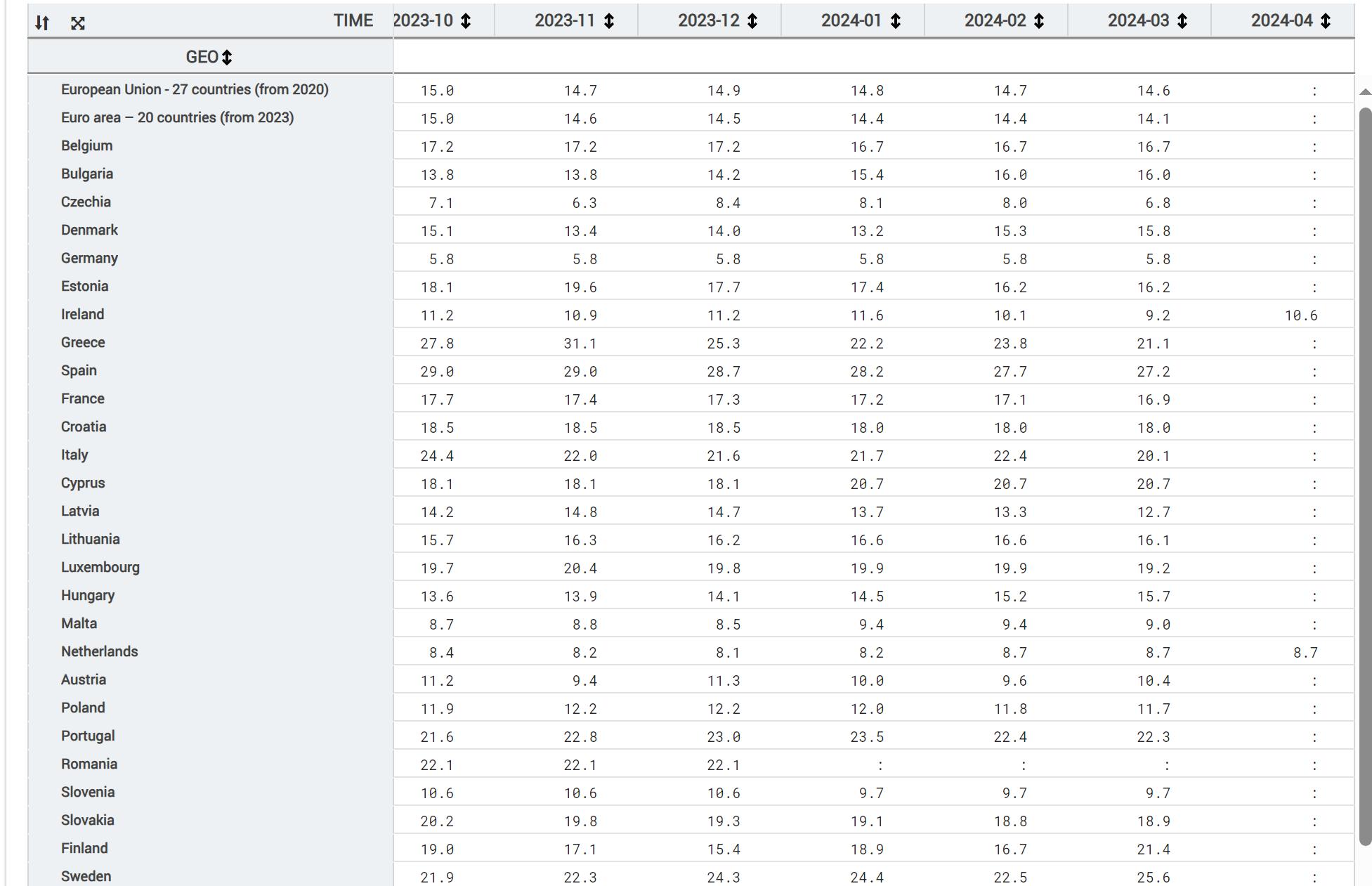Y todo ello nos lleva a que somos más pobres: con el último dato publicado por Eurostat, referente a 2022, somos el cuarto país con más porcentaje de población en riesgo de pobreza, con un 26%.