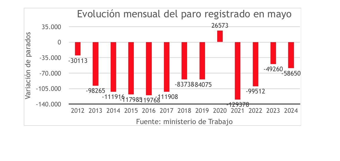La reducción del paro es el tercer peor registro de un mes de mayo de los últimos trece ejercicios.