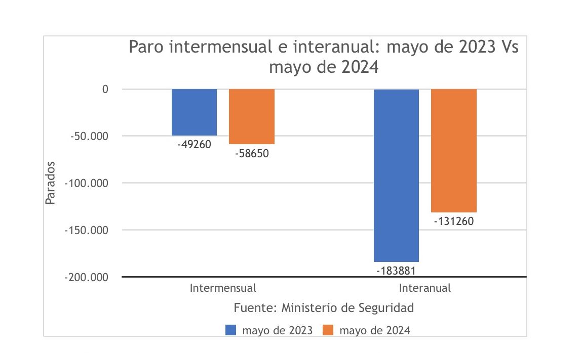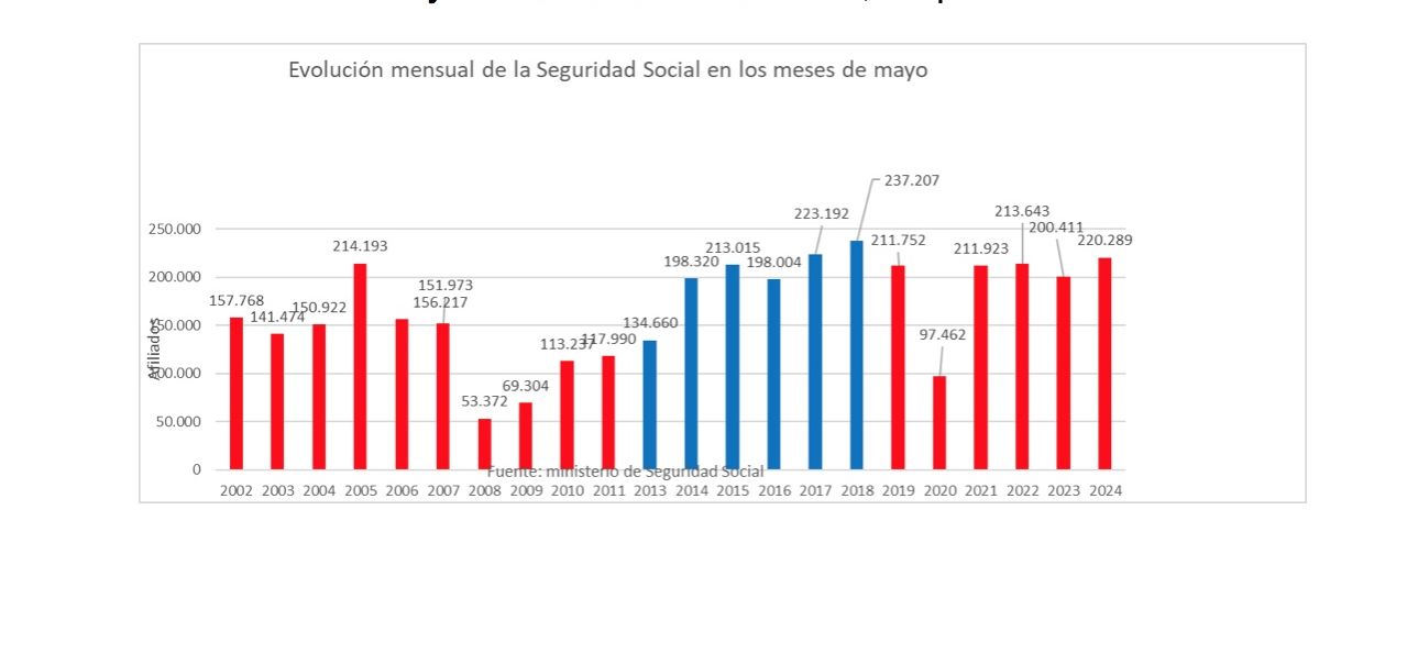 Tras la EPA del IVTR-2023 y del ITR-2024 que mostraron que se había destruido empleo en el trimestre y que si no caía más se debía a la importante creación de empleo público en el IVTR-2023, los datos de enero, donde el paro registrado y la Seguridad Social confirmaron que el año comenzó con un importante deterioro del mercado laboral, y de febrero, donde ya se produjo un cierto espejismo, llegó marzo, que mostró que la bajada del paro y el aumento de cotizantes se debía, realmente, a la estacionalidad, al efecto de la Semana Santa, que este año ha sido pronto. Ese mismo espejismo estacional continuó en abril, como dijimos el mes pasado.