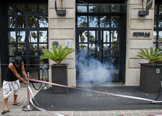 De hecho, durante los incidentes, para evitar que los energúmenos les siguieran mojando o insultando, los turistas se vieron obligados a huir dentro de los locales en unas bochornosas imágenes.