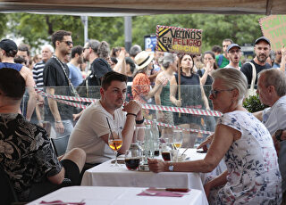 Bajo el lema "Prou! Posem límits al turisme" (Basta! Pongamos límites al turismo), una manifestación, protagonizada por asociaciones ecologistas, vecinales y sindicatos, se dedicó a acosar a clientes extranjeros mojándoles con pistolas de agua y a precintar locales de restauración y hoteles.