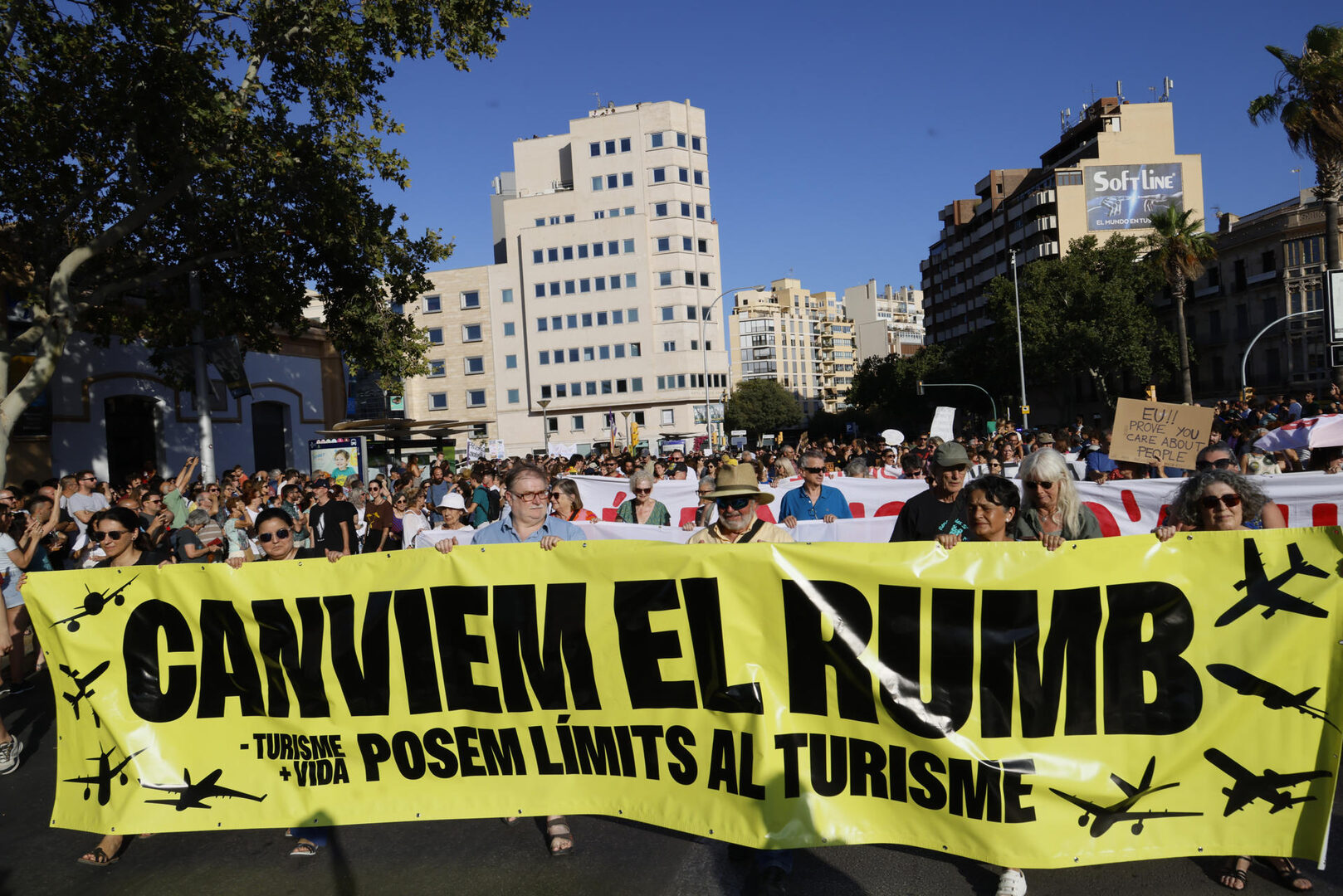Palma de Mallorca vuelve a manifestarse contra la turismofobia. Más de 20.000 personas, según la Policía Nacional, se congregaron el pasado fin de semana para poner "límites al turismo", el lema de las protestas de los organizadores "menys turisme, més vida" (menos turismo, más vida).