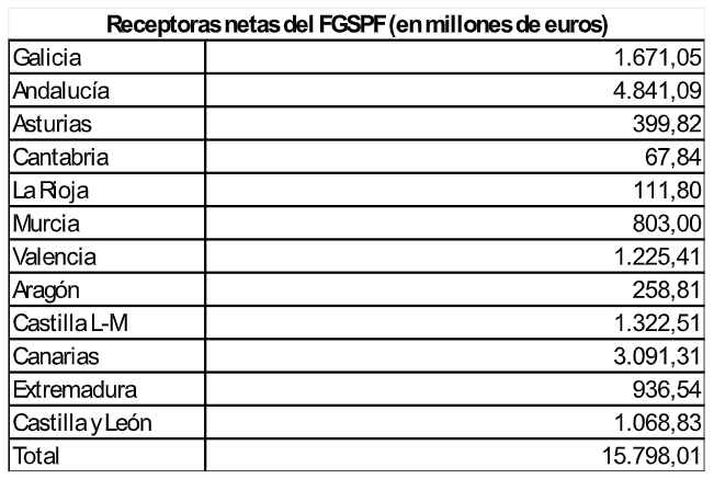 Pues bien, cada región receptora neta recibió en 2021 (último liquidado de manera definitiva) lo siguiente del FGSPF de forma neta (lo recibido es mayor que lo aportado en esta cantidad):