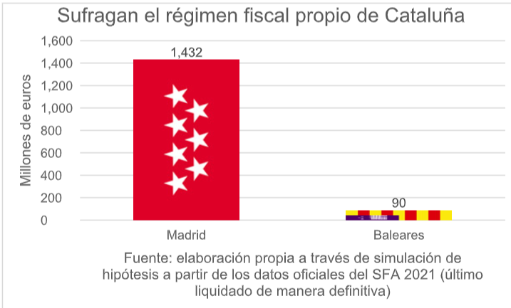 Y en cuanto a las repercusiones económicas para el resto de españoles, serían muy gravosas. Actualmente, en el Sistema de Financiación Autonómica, hay tres regiones que aportan, de manera neta, al Fondo de Garantía de los Servicios Públicos Fundamentales (FGSPF), que son Madrid, Baleares y Cataluña, por orden de mayor a menor aportación en porcentaje del PIB, tal y como se desprende de la liquidación de cada ejercicio, y que confirma la del último ejercicio con liquidación definitiva, que es 2021: