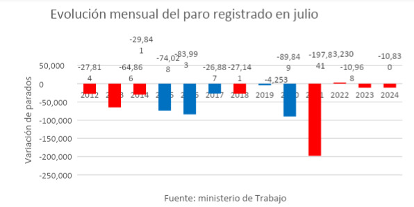 El paro baja en 10.830 personas, menos que el mismo mes del año anterior. Es el tercer peor dato de un mes de julio de los últimos trece años.