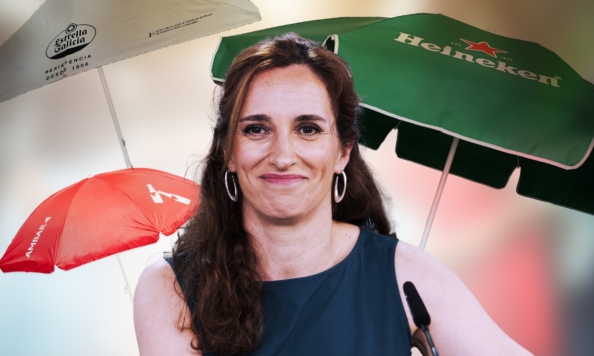 Las tradicionales sillas, mesas, sombrillas, toldos y servilleteros con publicidad de marcas de cerveza que se pueden ver en casi todas las terrazas de los bares tienen los días contados. Estarán totalmente prohibidas en cualquier local que se encuentre a menos de 200 metros de zonas frecuentadas por menores, según el anteproyecto de ley de prevención del consumo de alcohol y sus efectos en menores de edad elaborado por el Ministerio de Sanidad que dirige Mónica García.