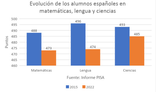 Todo este esperpento actual, ha llevado a que los alumnos españoles cada vez bajen más en su rendimiento, el informe PISA lo deja muy claro: el relativo a 2022, último disponible, establece que respecto a 2025 los alumnos españoles han bajado quince puntos en matemáticas, veintidós en lengua y ocho en ciencias; un desastre.