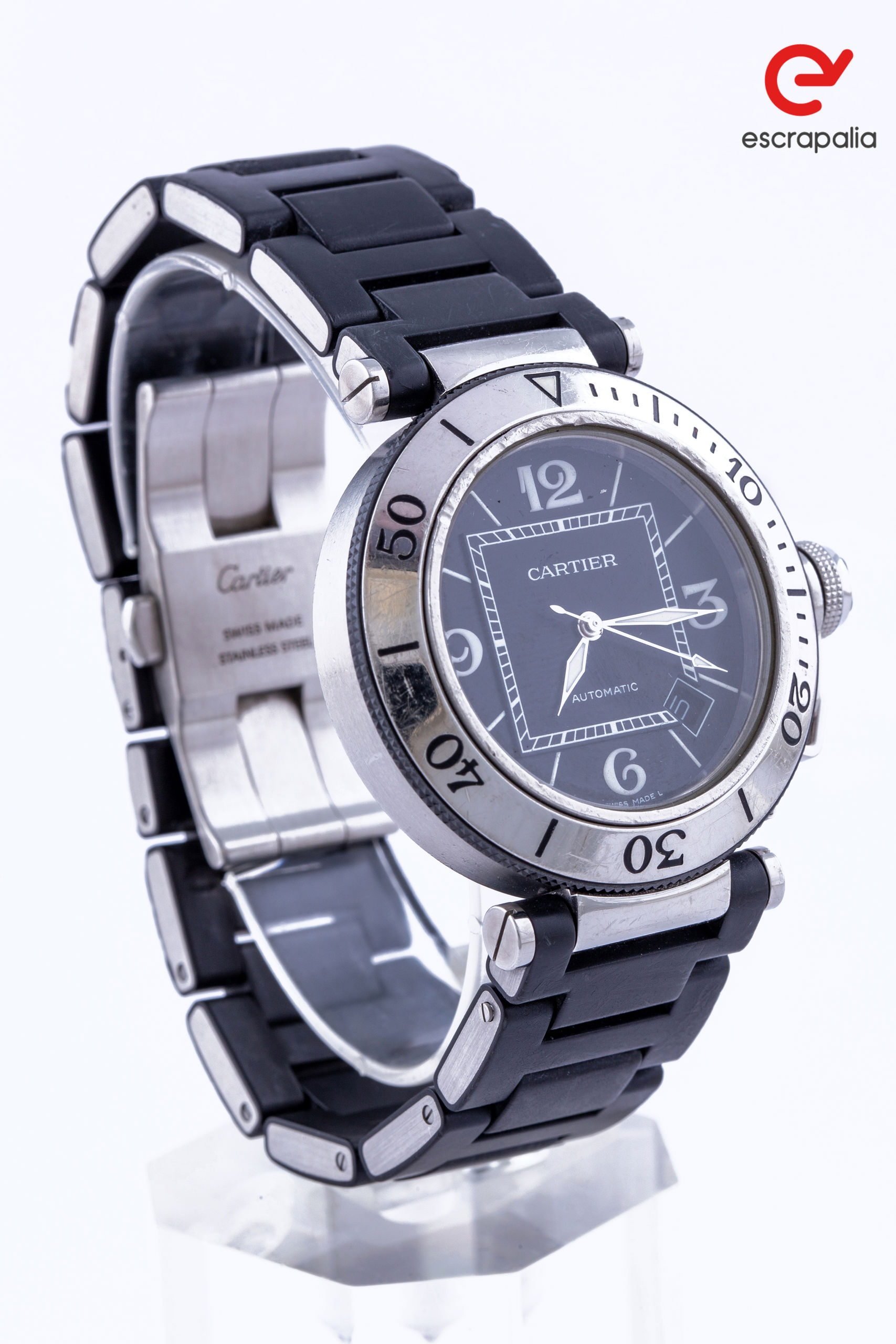 Este modelo Pasha Seatimer es una pieza distintiva de Cartier, conocida por su diseño robusto y elegante, adecuado tanto para actividades deportivas como para ocasiones formales. Ideal para coleccionistas y entusiastas de relojes de lujo. Su puja ronda los 1.600 euros.