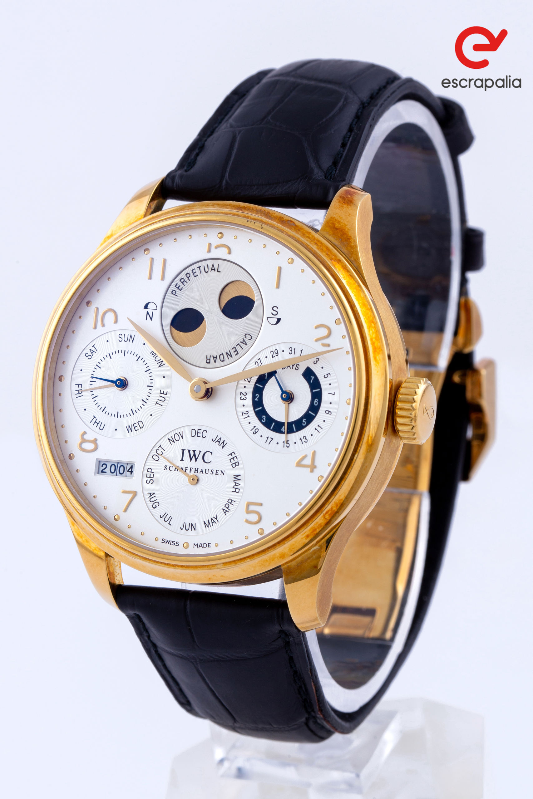 Este IWC Schaffhausen Perpetual Calendar es una pieza de alta relojería que destaca por su complejidad y elegancia. La caja de oro de 18 quilates alberga un movimiento automático con un calibre IWC Calibre 51614, conocido por su precisión y durabilidad. Con una reserva de marcha de 7 días, este reloj garantiza una precisión prolongada sin necesidad de ajustes frecuentes. La puja supera los 9.400 euros.