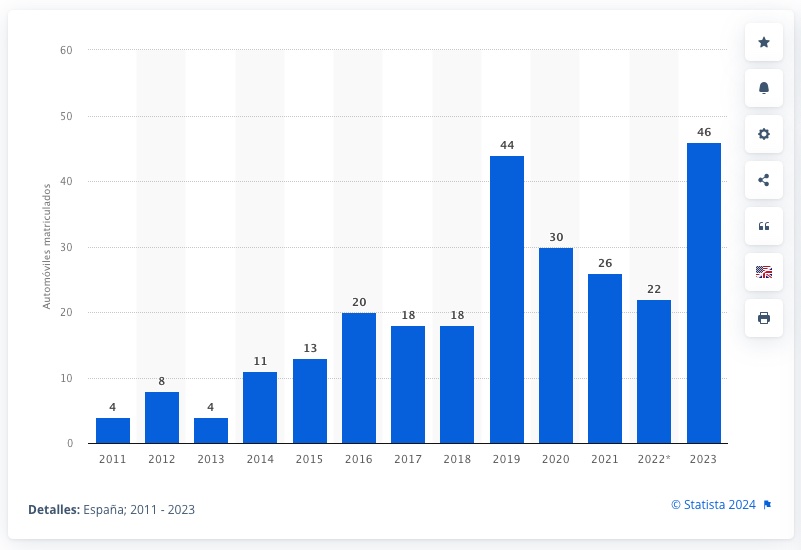 No en vano, el número de coches de la lujosa marca italiana que se matriculan al año en España no llegan al calificativo de anecdótico. Por poner un ejemplo, entre los años 2022 y 2023 se matricularon en España 68 Lamborghinis. El número total de matriculaciones de esos dos años fue de 1.762.756 coches. Lo que significa que el número de Lamborghinis matriculados en España en esos dos años fue del 0,0038% de los coches.