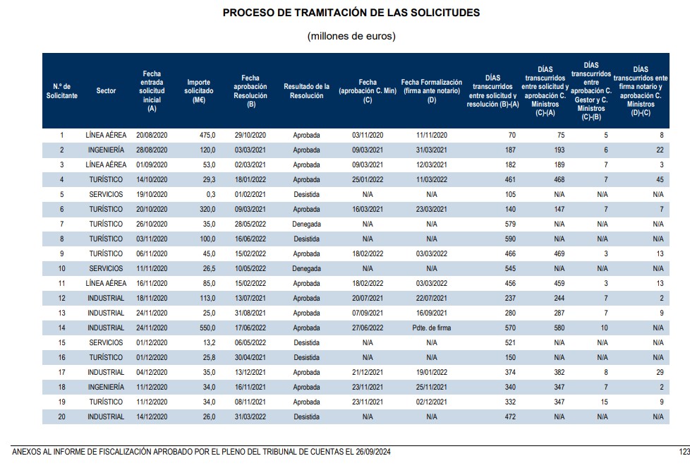 Sorprendente, ¿verdad? Eso, a pesar de tratarse del primer rescate y que justo unos días antes, el 31 de julio de 2020, se aprobara el "Procedimiento a seguir para la tramitación y resolución de las solicitudes de apoyo público temporal con cargo al FASEE", primer documento regulador de la tramitación de las ayudas que fijó los pasos a seguir para su aprobación o desestimación, un protocolo absolutamente farragoso.