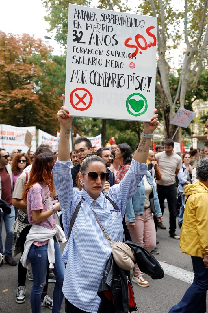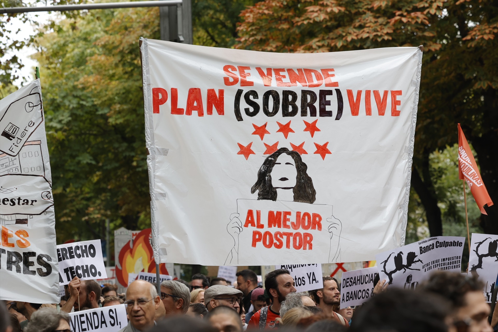 A pesar de que los organizadores aseguran que hubo 400.000 asistentes, la delegación del Gobierno rebaja la cifra a 22.000. Entre las proclamas, numerosos ataques a inmobiliarias y portales como Idealista.