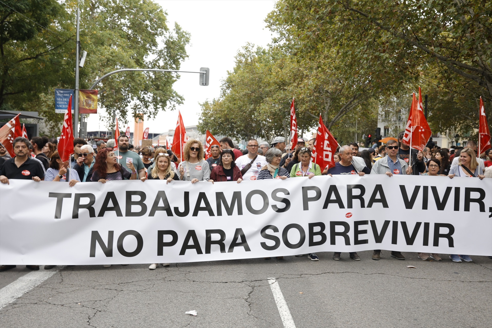 Entre los manifestantes, se encontraba una nutrida representación de CCOO, con una pancarta en la que se podía leer: “Trabajamos para vivir, no para sobrevivir".