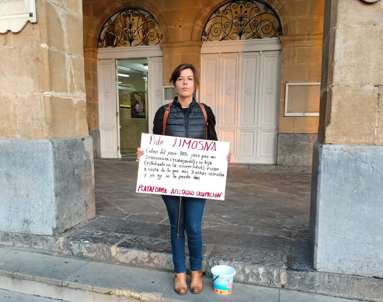 Su situación es tan desesperada que este lunes ha decidido plantarse en la puerta del Ayuntamiento de Portugalete, la localidad en la que se encuentra la vivienda, para pedir limosna. "Cobro del paro 907 euros para que mi inquiokupa (trabajando) y su hija (estudiante de universidad) vivan a costa de lo que mis tres niñas necesitan y yo no les puedo dar", reza la pancarta con la que acompaña esta protesta, auspiciada por la Plataforma de Afectados por la Ocupación.
