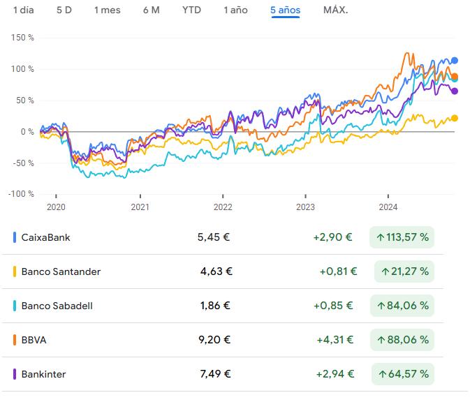 Vean la rentabilidad que ha ofrecido los principales bancos en bolsa en los últimos 5 años.