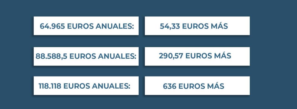 Para hacernos una idea de la magnitud de la subida, en el Instituto BBVA Pensiones han calculado que, en 2025, la base máxima subiría hasta los 59.059 euros (4.921,59 euros mensuales). Por tanto, todo el salario percibido en exceso de esa cantidad quedaría sujeto a la nueva cuota de solidaridad. Quedaría así para los siguientes tres ejemplos: