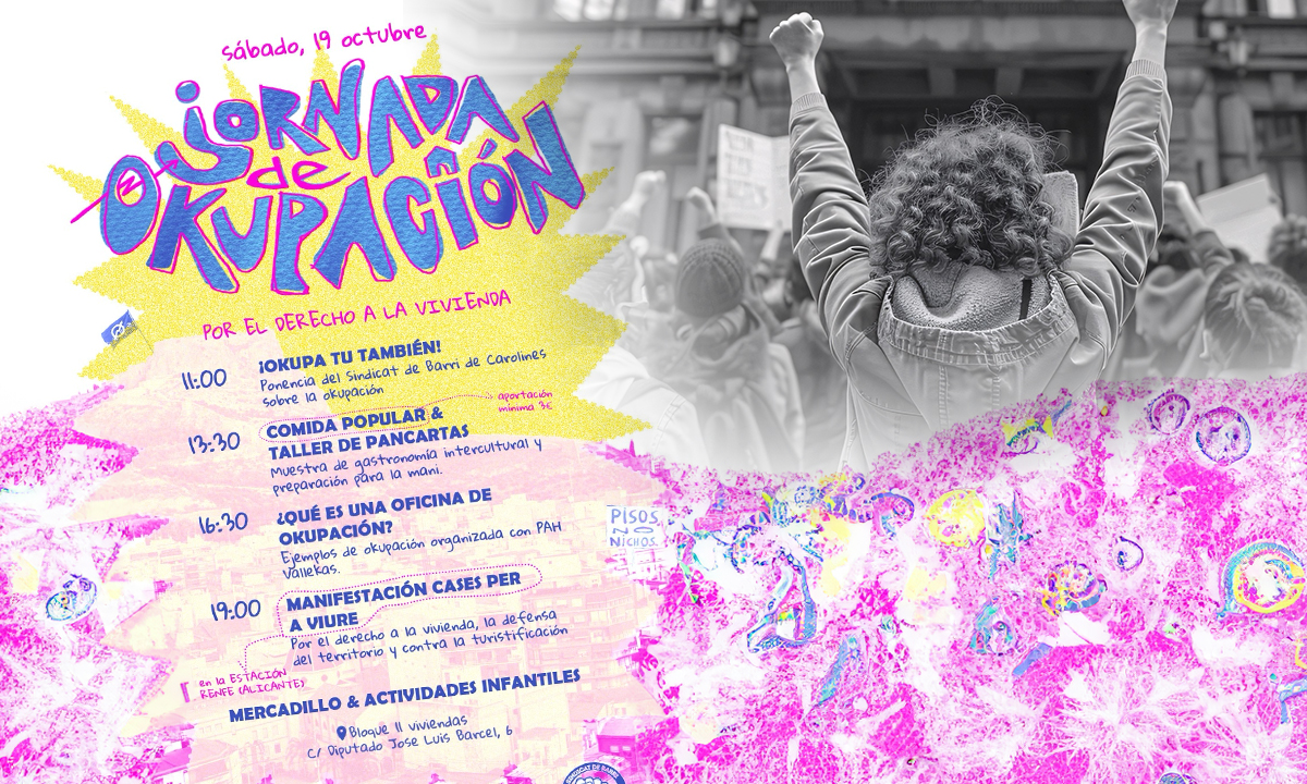 Las jornadas celebradas el pasado domingo en Alicante, coincidiendo con las manifestaciones convocadas en la Comunidad Valenciana sobre Vivienda, comenzaban precisamente con un taller que llevaba por título "Okupa tu también", a cargo del Sindicat de Barri de Carolines. Tras una "comida popular" y un "taller de pancartas", la PAH de Vallecas se encargó de ilustrar a los presentes sobre "qué es una oficina de okupación".