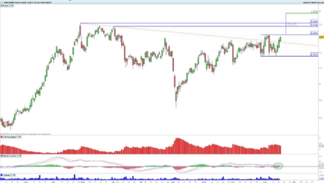 Cierre por encima de 4,65 euros activará objetivo alcista