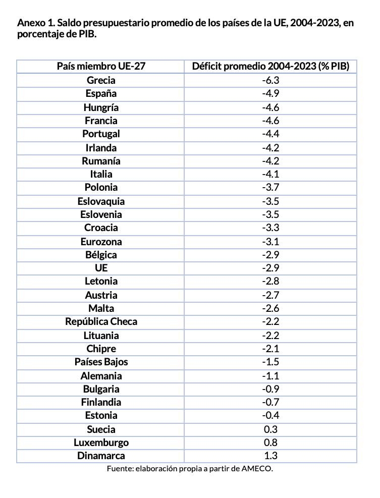 Como explica el estudio del Día de la Deuda del IJM, "en los veinte últimos años, España ha sido el segundo país de la Unión Europea con peor desempeño en materia de estabilidad presupuestaria, registrando un déficit promedio del 4,9 por ciento del PIB que solamente se ve superado por el 6,3 por ciento de Grecia".