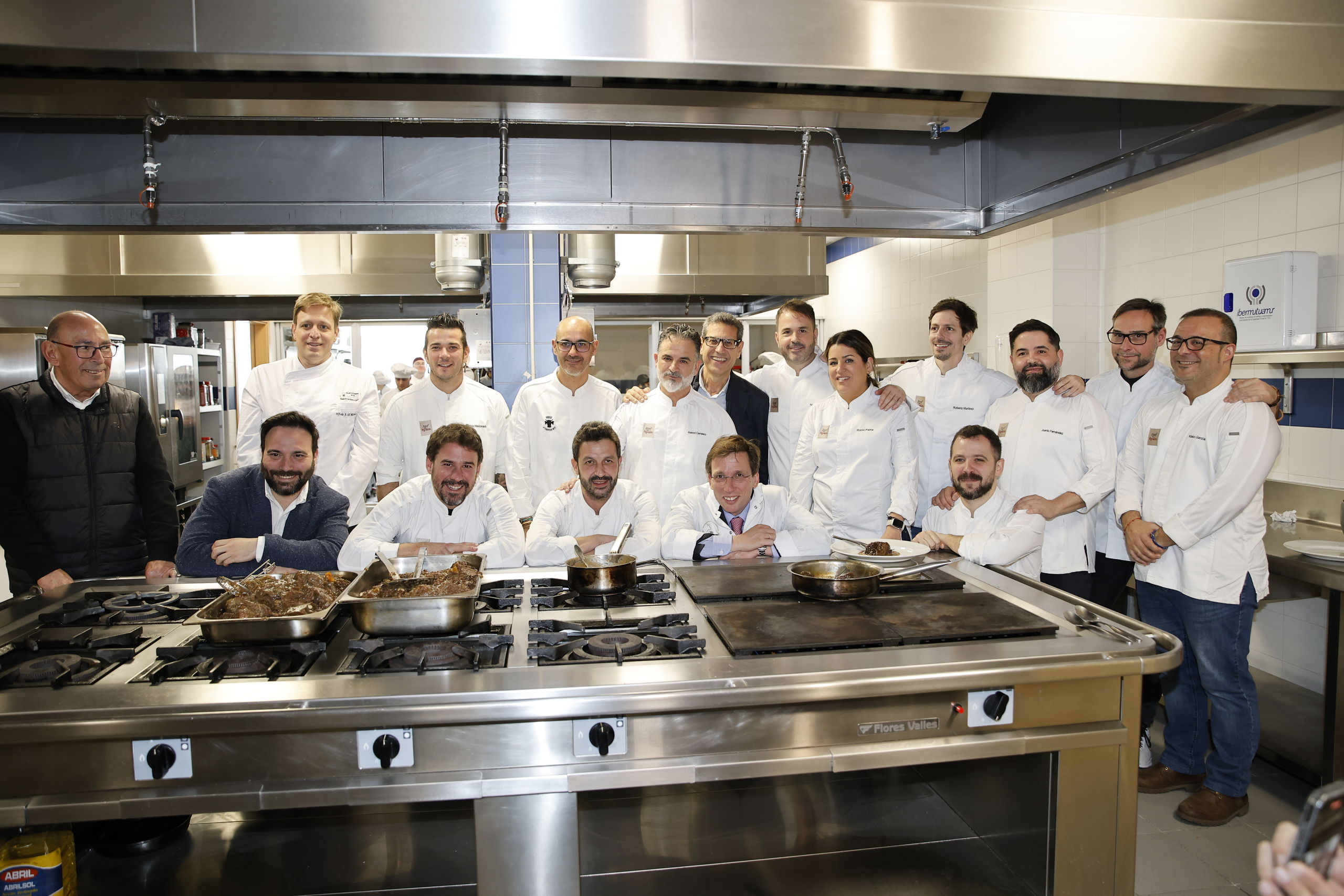 La iniciativa, que se celebra por estas mismas fechas desde hace tres años, ha consistido en la elaboración y entrega de estos menús de carrilleras de ternera estofadas con puré trufado de patata por trece chefs de renombre, varios de ellos con estrella Michelin, que han sido distribuidos en varios centros de acogida de la ciudad de Madrid para personas sin hogar.