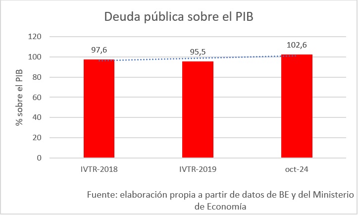 Sobre los datos de PIB agregados de los últimos cuatro trimestres -ya con el PIB revisado-, el porcentaje se eleva al 103,8%.