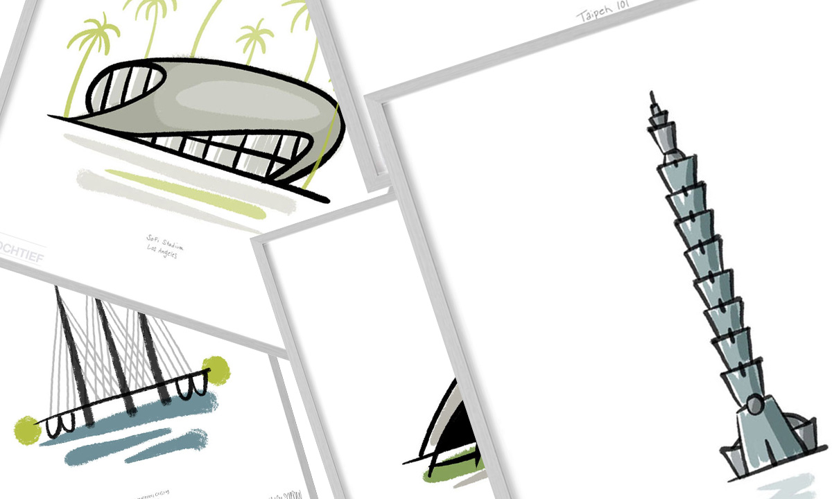 El Grupo ACS ha seleccionado algunos de los proyectos más espectaculares realizados por sus filiales en todo el mundo y ha encargado al artista alemán Helge Jepsen que los plasmara en forma de ilustraciones. Proezas de la ingeniería civil y edificios icónicos han sido transformados en obras de arte a partir de trazos sencillos con el sello inconfundible de su autor.