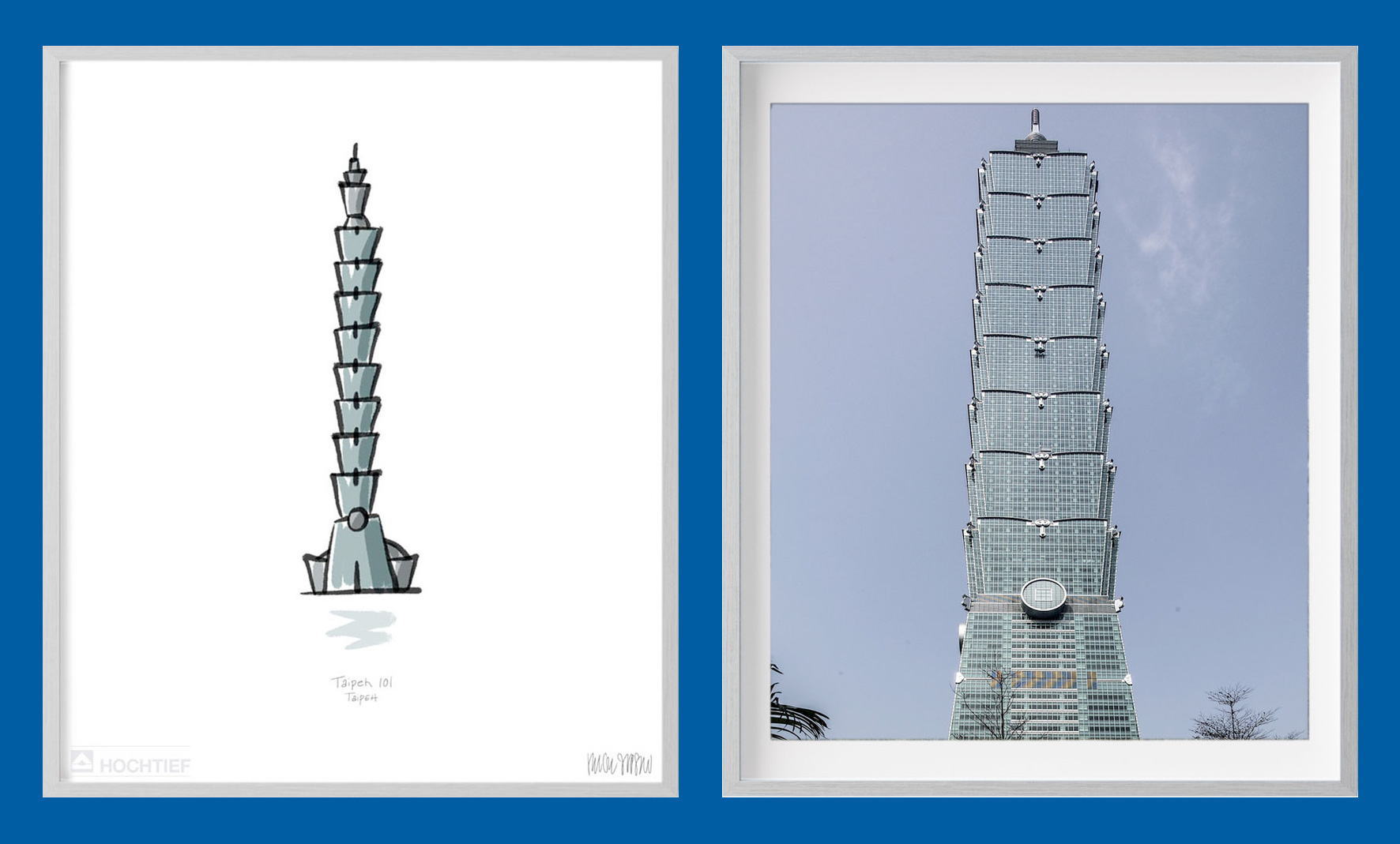 La estructura del edificio Taipei 101, de 508 metros de altura y 101 pisos, parece un poste de bambú gigante que sobresale del mar de casas de Taiwán. Nunca antes se había construido un rascacielos en un lugar con tantos terremotos; para protegerlo se montó una esfera de acero de 660 toneladas entre los pisos 88 y 92 que hace que oscile como un péndulo en contracorriente durante los movimientos extremos del suelo. Turner terminó de construir este icono de la ciudad en 2004 y recibió el sello de sostenibilidad LEED Platinum.
