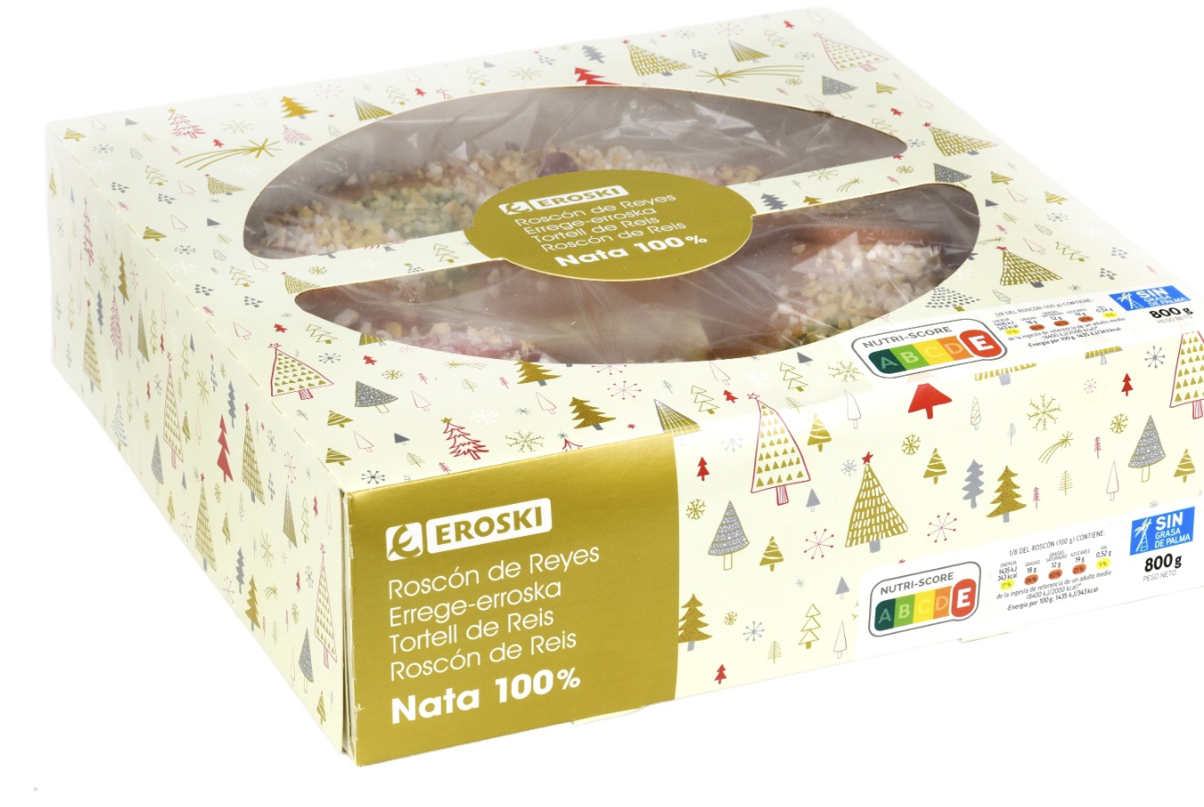 El roscón de Reyes de Eroski cuenta con 5 estrellas en las categorías de etiquetado, calidad del relleno y calidad de la grasa del bollo.