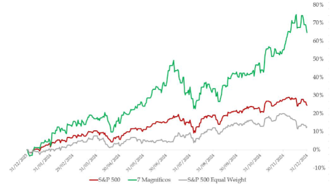 Durante 2024, el índice S&P 500 logró una rentabilidad del 25%,
