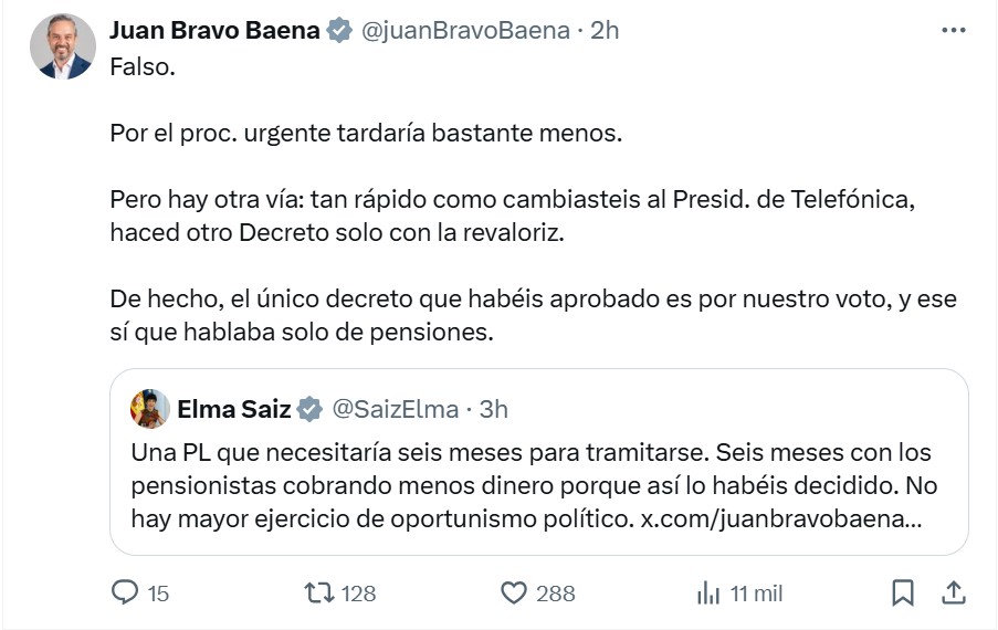 Desde el PP no dan crédito a la estrategia del Gobierno. "Pueden convocar hoy mismo un Consejo de Ministros extraordinario para aprobar el decreto ley de la revalorización de las pensiones, que tiene una vigencia de 30 días, por lo que se cobraría en febrero. Después, si lleva el decreto solo con las pensiones al Congreso, nosotros se lo aprobamos" aseguran. Una explicación similar le ha dado el vicesecretario de economía del PP, Juan Bravo, a la ministra de Seguridad Social en X.