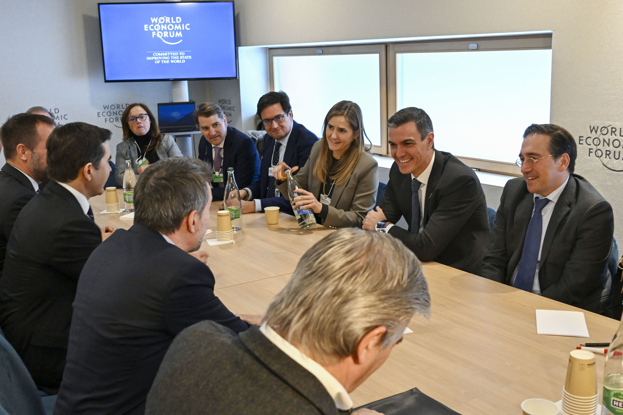 Entre los asistentes al Foro de Davos estuvieron algunos de los más relevantes empresarios españoles, desde los presidentes de Santander y BBVA, Ana Patricia Botín y Carlos Torres Vila a los directivos de las grandes energéticas, como el presidente de Iberdrola, Ignacio Sánchez Galán, y el CEO de Repsol, Josu Jon Imaz, Además de participar en algunas mesas redondas de las jornadas del FMI, los empresarios celebraron un encuentro en medio de la cumbre con el presidente español, Pedro Sánchez. Tras la incómoda foto de la "sala de las escobas" del año pasado, este año el encuentro llegaba poco después de que fuera tumbado el impuestazo a las energéticas contra el que había protestado especialmente el CEO de Repsol. Sánchez saludó a Imaz, según una información de Carlos Segovia en El Mundo, con un "¡estarás contento!" que el directivo de Repsol respondió con un "sigo pensando lo mismo que escribí".