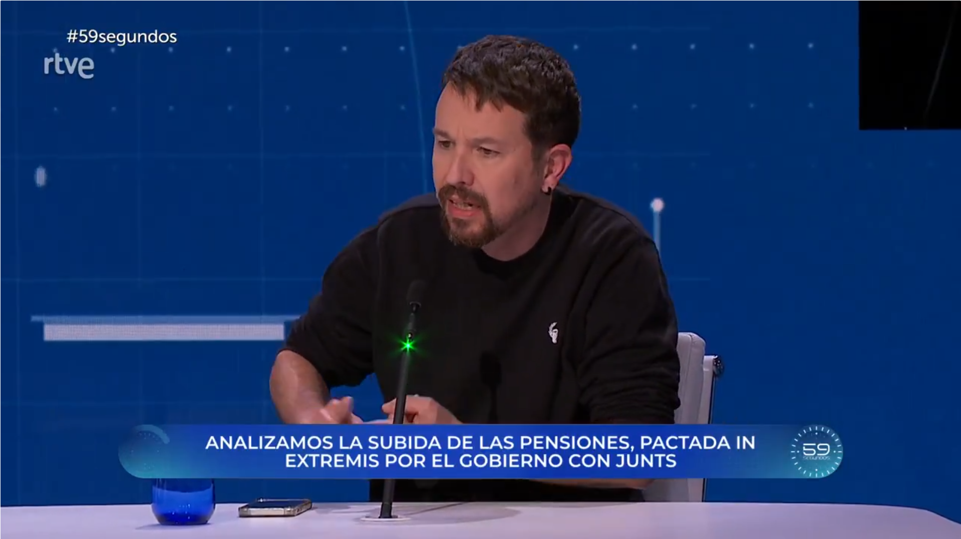 En el programa "59 segundos" de RTVE de este pasado miércoles, se debatió entre otras cosas sobre el sistema público de pensiones, y en esta tertulia asistieron algunos personajes públicos como Pablo Iglesias, Unai Sordo o José Manuel García Margallo.