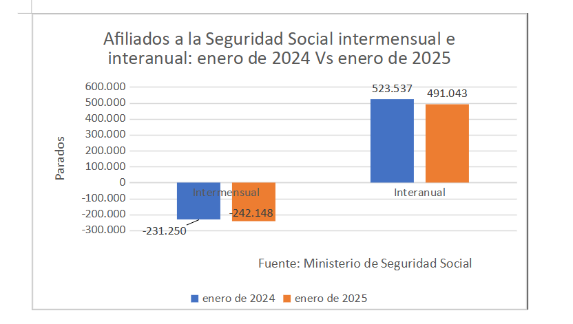 Además, los datos de afiliación son también mucho peores, en intermensual e interanual que los de enero del año pasado.
