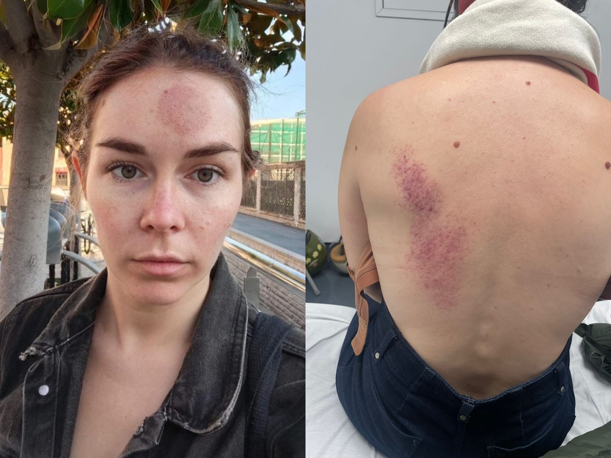 En octubre, según consta en las denuncias y partes de lesiones a los que ha accedido Libre Mercado, el inquiokupa se enfrentó a ella hasta en dos ocasiones. Concretamente, le propinó numerosos "golpes en la espalda con una olla de cocina" y la pateó hasta que la joven cayó al suelo, provocándole varios hematomas que se pueden ver perfectamente en las fotografías aportadas. Además, la habría insultado y uno de sus amigos se habría acercado a ella con un cuchillo, tratando de chantajearla: "Nos estás jodiendo. Páganos 3.000 euros y nos marchamos del piso. Si no, te vamos a matar y quemar tu casa".