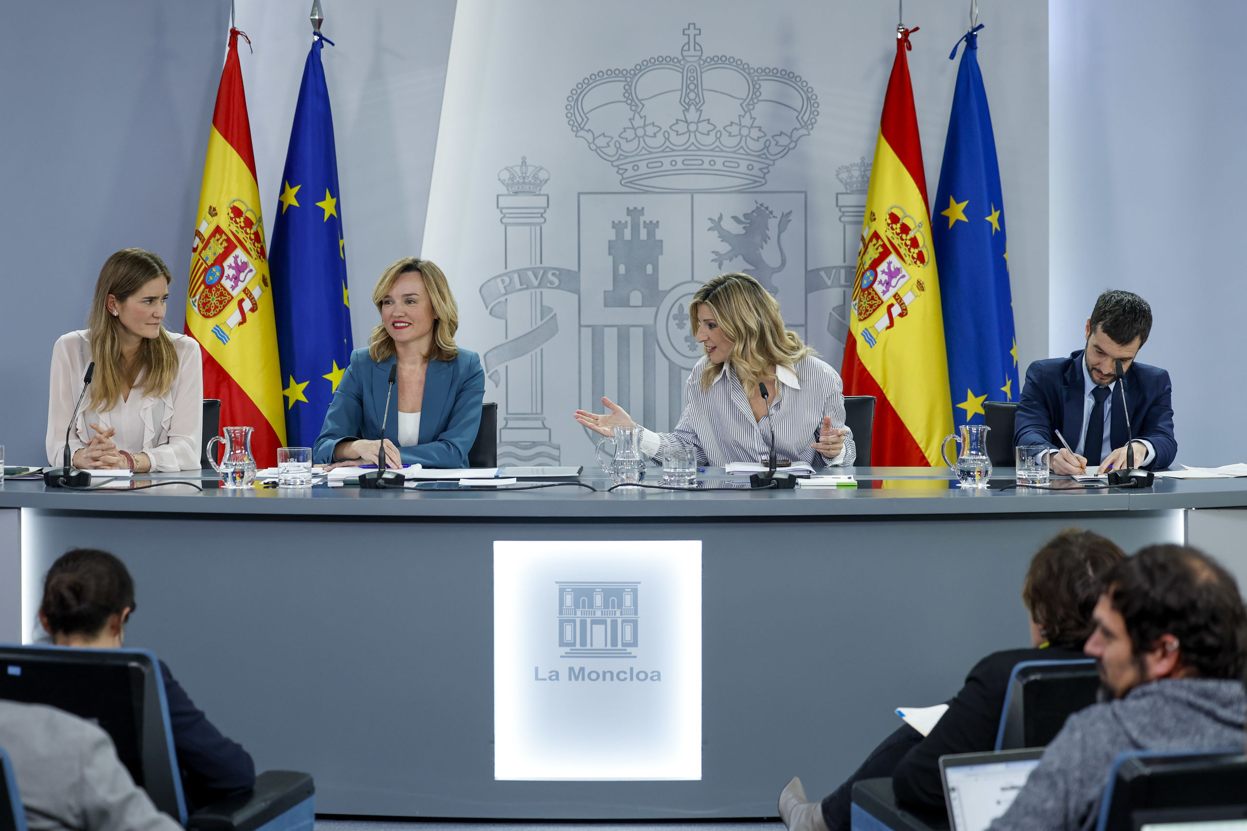 A su lado, la ministra portavoz, Pilar Alegría, ha tratado de esquivar las balas y en una indirecta a su compañera de mesa ha pedido hacer "pedagogía" sobre los impuestos "Esa parte que se dicen que se lleva Hacienda va directamente a consolidar los servicios públicos de los que todos los ciudadanos hacemos uso", ha respondido mientras que ha tratado en vano de redirigir el tiro contra el PP y de centrar la importancia en su "satisfacción" por la subida del SMI. "Saltamos pantallas demasiado rápido", ha asegurado.
