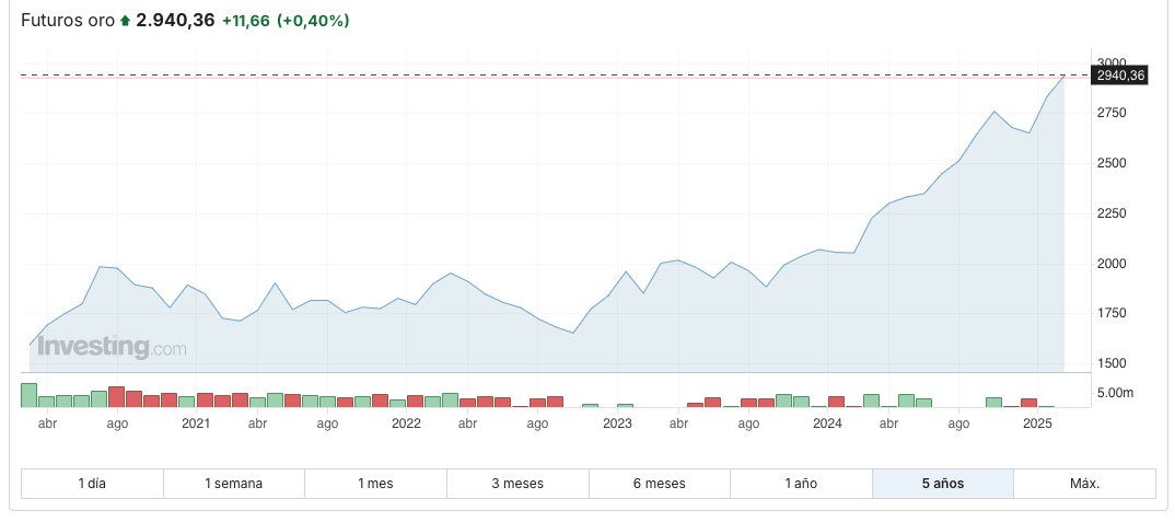 Sin duda, el activo de moda en este momento es el oro. Una materia prima que generalmente ha funcionado como valor refugio y que actualmente se encuentra en máximos históricos, rozando los 3.000 dólares por onza. Sólo hace cinco años, en marzo de 2020, estaba ligeramente por encimad e los 1.500. Se ha doblado en cinco años. En los últimos diez años ha mostrado una férrea revalorización marcando rentabilidades anualizadas superiores al 9%.