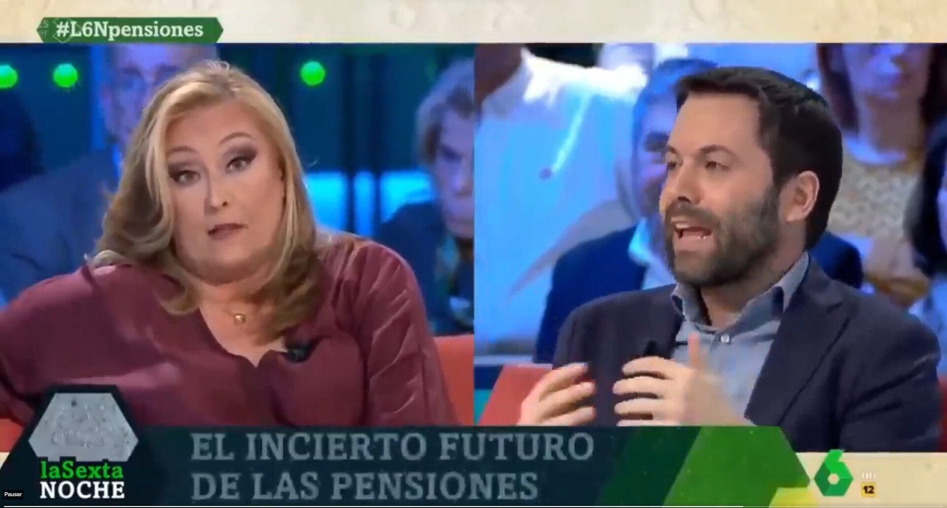 Me llega un vídeo en Twitter de un debate en LaSexta Noche sobre pensiones. La protagonista es Elisa Beni, aunque también intervienen José Carlos Díez y Juan Ramón Rallo: