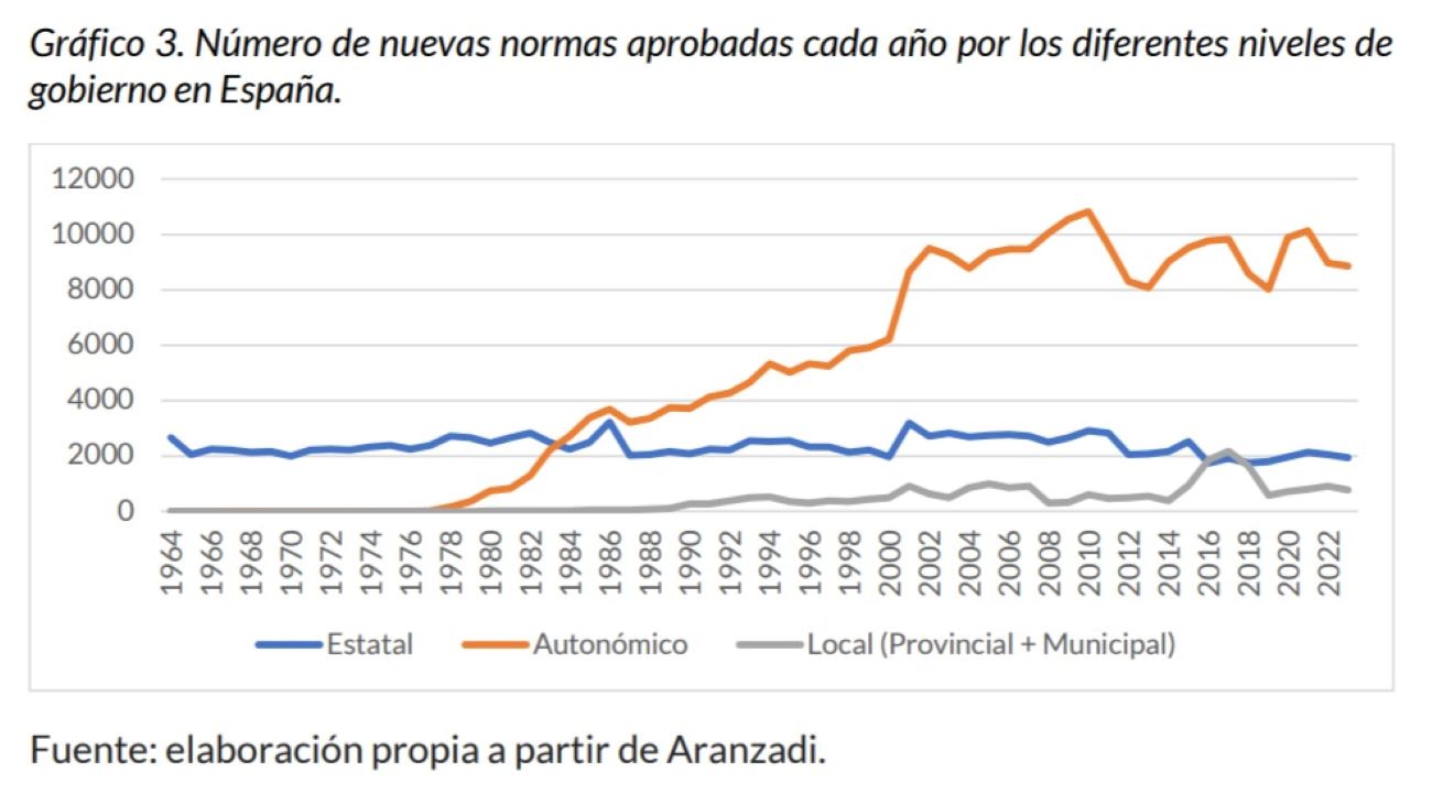 Por otra parte, lo cierto es que la normativa está disparada y duplicada en muchos casos con la autonómica, acumulando un volumen de texto legislativo que supone un coste del 3.5% del PIB: 90.000 millones de euros. Así, el manual del impuesto sobre la renta de la Agencia Tributaria alanzó en 2023: 1921 páginas y el IVA 360. El de Sociedades 796. Por otra parte, las regulaciones verdes han crecido con casi 10,000 instancias de este tipo aprobadas entre 2000 y 2022.