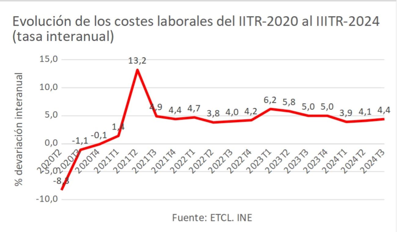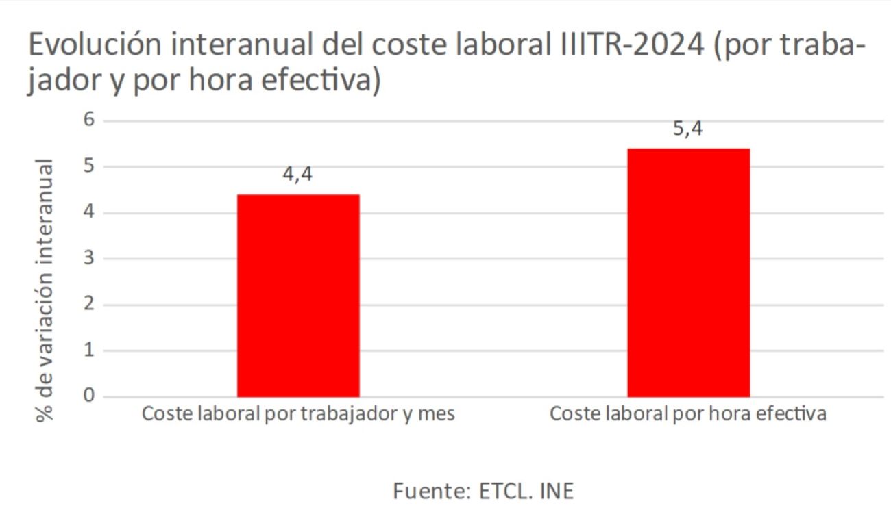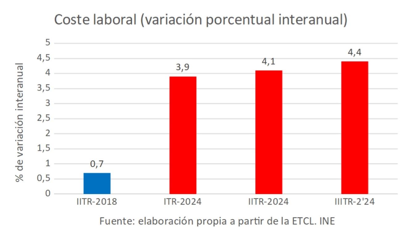 De hecho, este dato es más preocupante si analizamos el coste laboral por hora efectiva, ya que, en este caso, el incremento es de un 5,4% interanual.