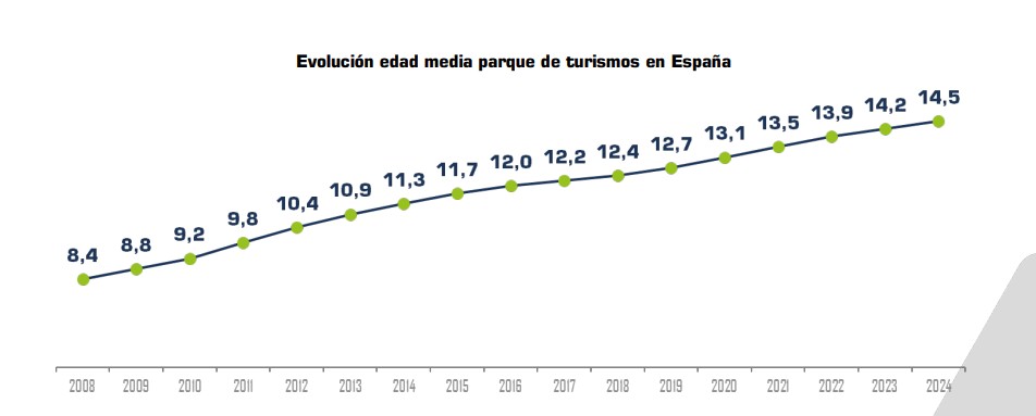 También sube la edad de las furgonetas (un 0,7 por ciento, hasta los 14,7 años) y los camiones (un 0,14 por ciento, hasta los 15,1 años). Sólo baja la edad de los autobuses, un 0,2 por ciento, con 11,5 años de media.
