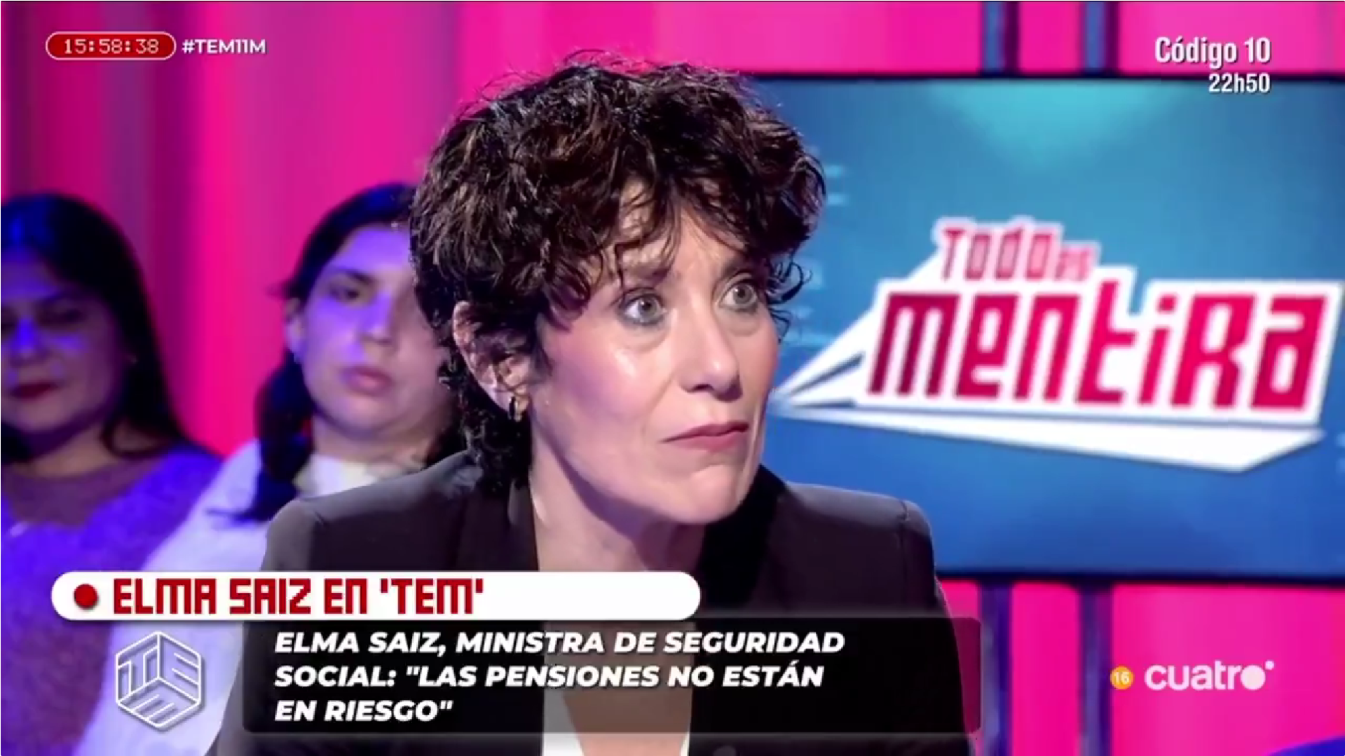 Este pasado martes la ministra de Inclusión, Seguridad Social y Migraciones Elma Saiz estuvo en el programa de Risto Mejide "Todo es Mentira" en Cuatro para hablar, entre otros temas, del estado actual del sistema público de pensiones. En cierto momento el presentador catalán le preguntó si nuestro sistema de reparto era sostenible o no lo era, a lo que la ministra le respondió lo siguiente que vamos a ver en este vídeo:
