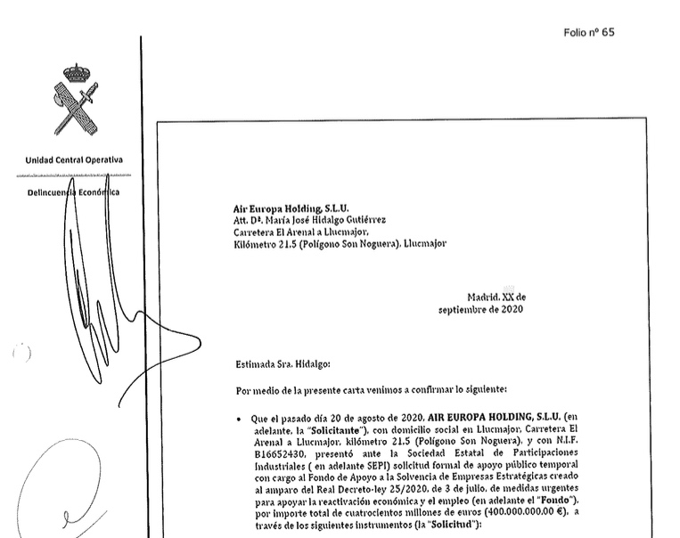 Eso sí, sin grandes miramientos, reconocía que "se expide la presente carta a solicitud expresa de Air Europa Holding S.L.U. Su presentación a terceros, sean entidades públicas o privadas, será bajo la exclusiva responsabilidad de Air Europa Holding S.L.U, habiendo respetado SEPI estrictamente el carácter reservado de la información". Es decir, que la carta era una ayuda extra a Air Europa para que ganara crédito o apariencia de viabilidad hasta que llegara el dinero del rescate.