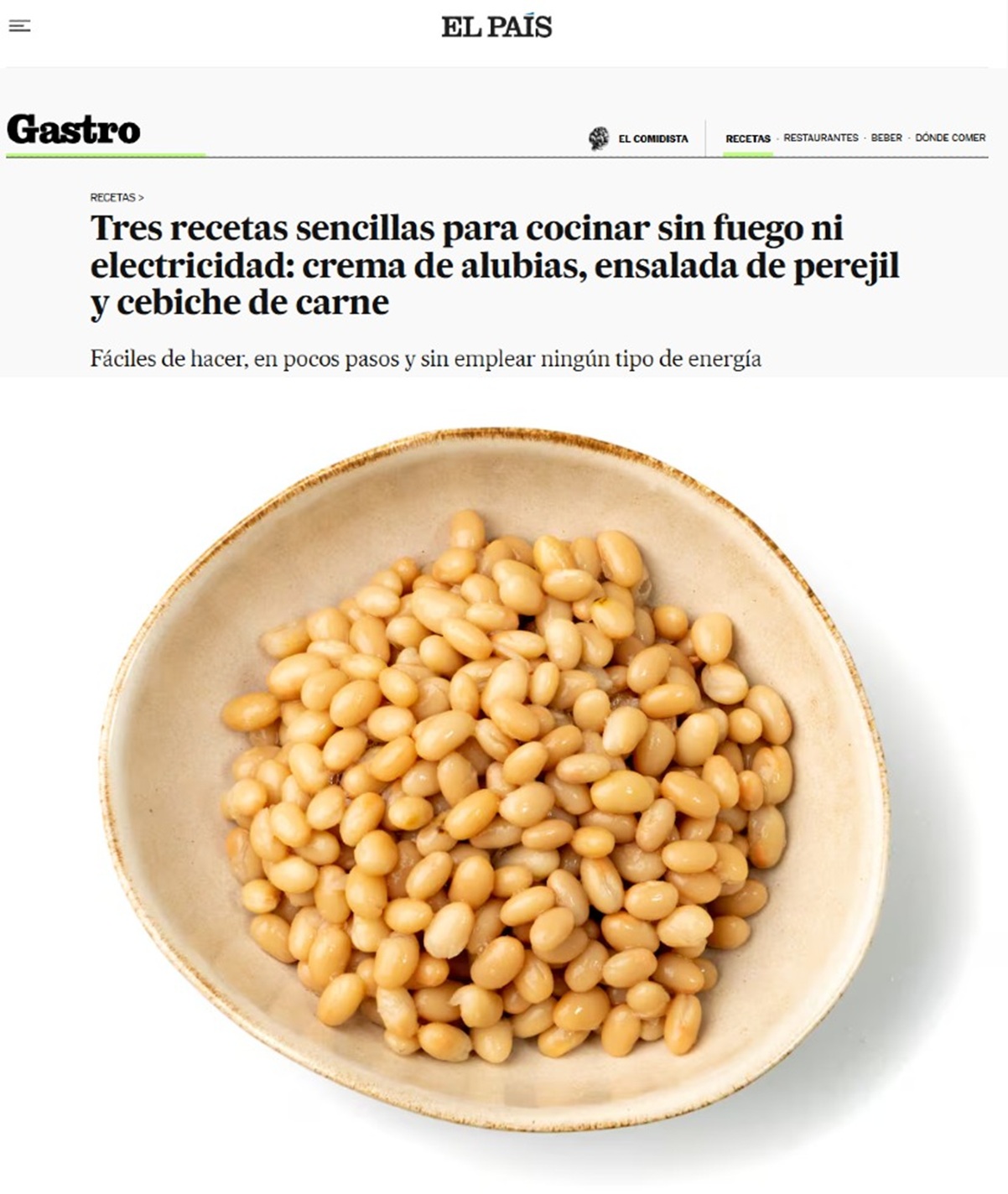 Si nos adentramos en dicho artículo vemos que las recetas que nos ofrece son: crema de alubias, ensalada de perejil y cebiche de carne. También se nos dice en el artículo que a pesar de no disponer de luz ni electricidad para hacer de comer, "eso no quiere decir que no se pueda hacer una comida exquisita y sin muchas complicaciones". Vamos, que un plato donde prácticamente el único ingrediente es el perejil o las alubias es una "comida exquisita".