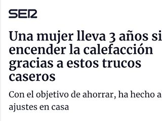 Hace unos meses comentamos aquí como la Cadena Ser ensalzaba a una mujer que llevaba tres años sin encender la calefacción de su casa, en un momento donde la pobreza energética afectaba al 20,7% de la población, mientras que cuando gobernaba Mariano Rajoy y esta pobreza energética afectaba al 10,1% de la población, los titulares eran "¿Pobreza energética?... ¡Vergüenza Nacional!" .