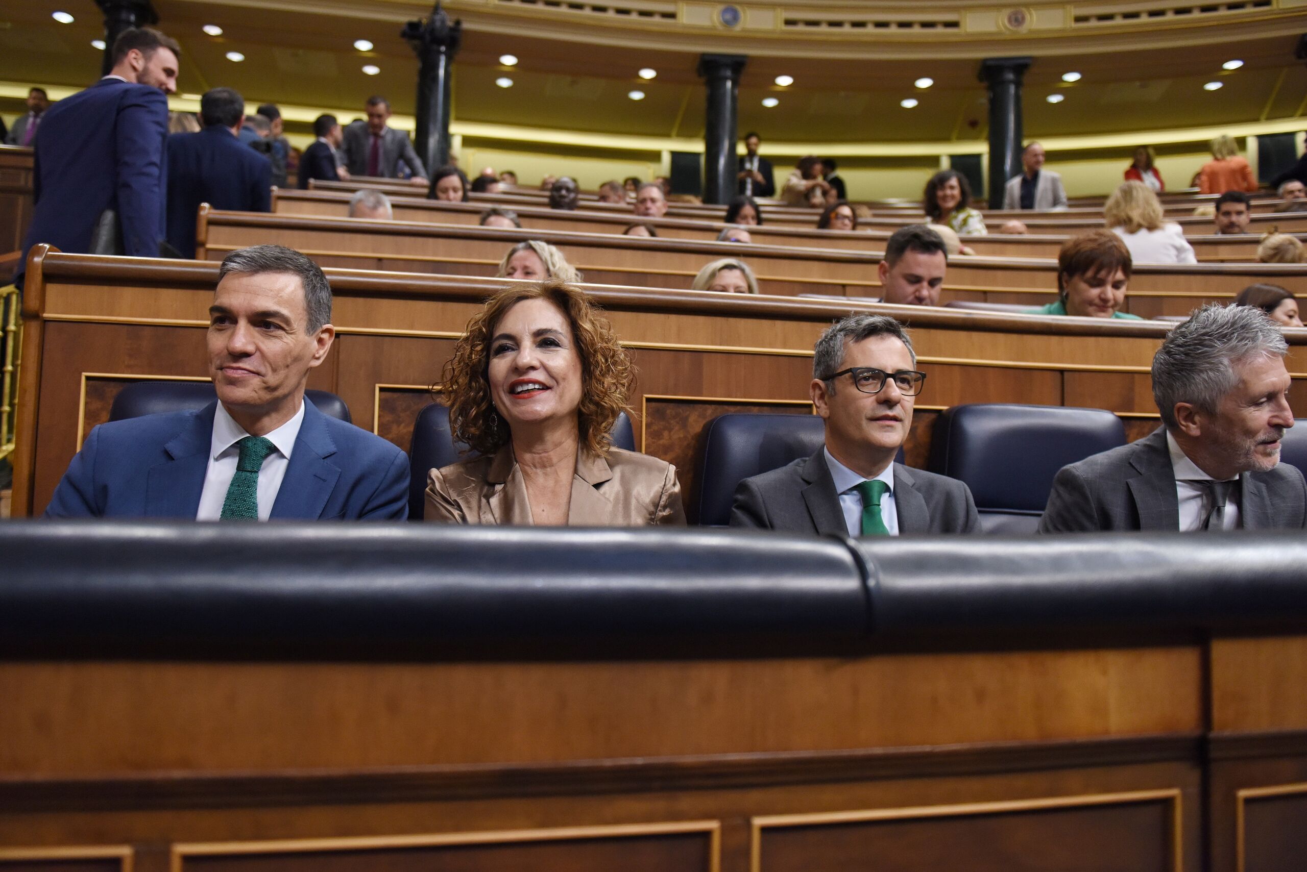 Pedro Sánchez, María Jesús Montero o Félix Bolaños han defendido esta mañana en el Congreso de los Diputados en la sesión de control al Gobierno, que España se ha convertido en una economía brillante que tira del crecimiento de la UE. Les ha faltado decir que atamos los perros con longaniza. Así protagonizaba el presidente su tradicional rifirrafe con Núñez Feijóo en las Cortes.