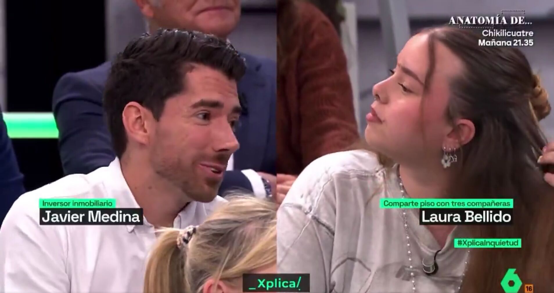 Como decimos, a lo largo del programa se enfrentaron diversas posturas entre ellas para ver quién tenía más o menos razón, y en uno de esos momentos se produjo un "cara a cara" entre el inversor inmobiliario Javier Medina (a quién hemos entrevistado en Libre Mercado) y Laura Bellido, que se definió como "una persona que comparte piso con tres compañeras más". Este momento ha tenido cierta repercusión en redes sociales y hasta el propio Javier Medina ha compartido este vídeo en su cuenta personal de X (Twitter):