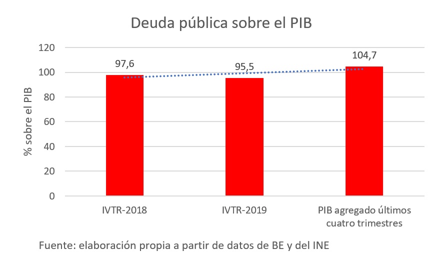 En el agregado de los últimos cuatro meses, la deuda sobre el PIB asciende a 104,7%.