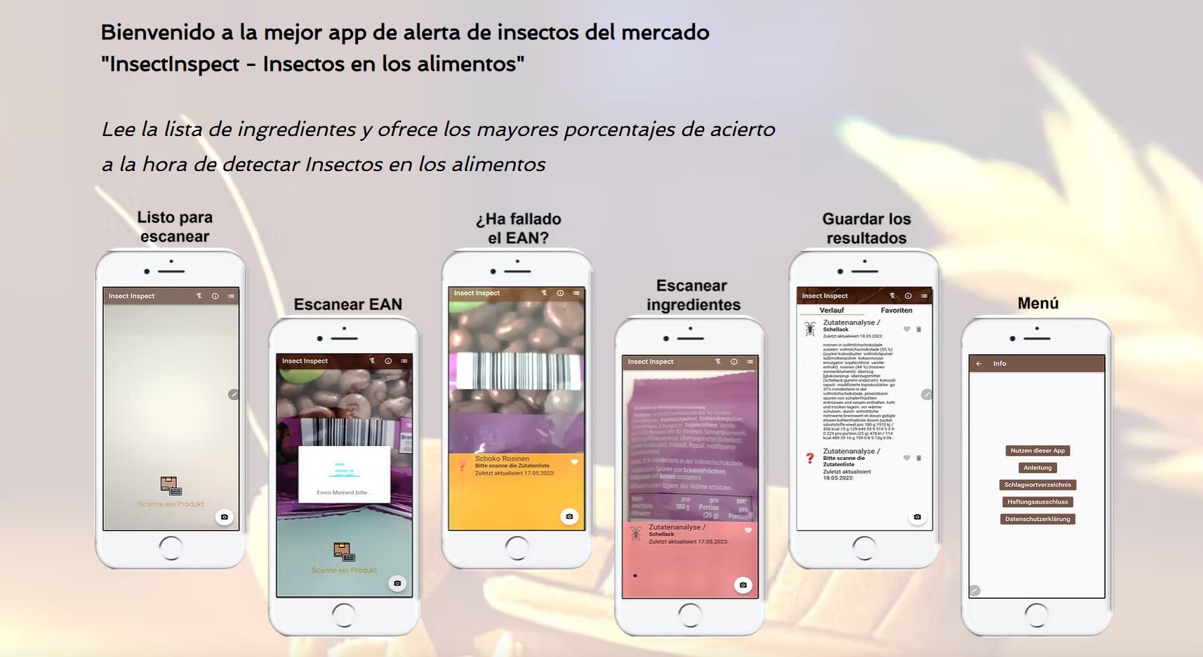 La aplicación permite escanear las etiquetas de los alimentos para detectar la presencia de insectos en forma de polvo, pasta u otros aditivos. Utiliza tecnología avanzada de reconocimiento de imágenes y lectura de etiquetas para identificar estos componentes, lo que la convierte en una de las herramientas más precisas del mercado. A diferencia de otras aplicaciones similares, no depende exclusivamente del código EAN, sino que lee directamente las listas de ingredientes.